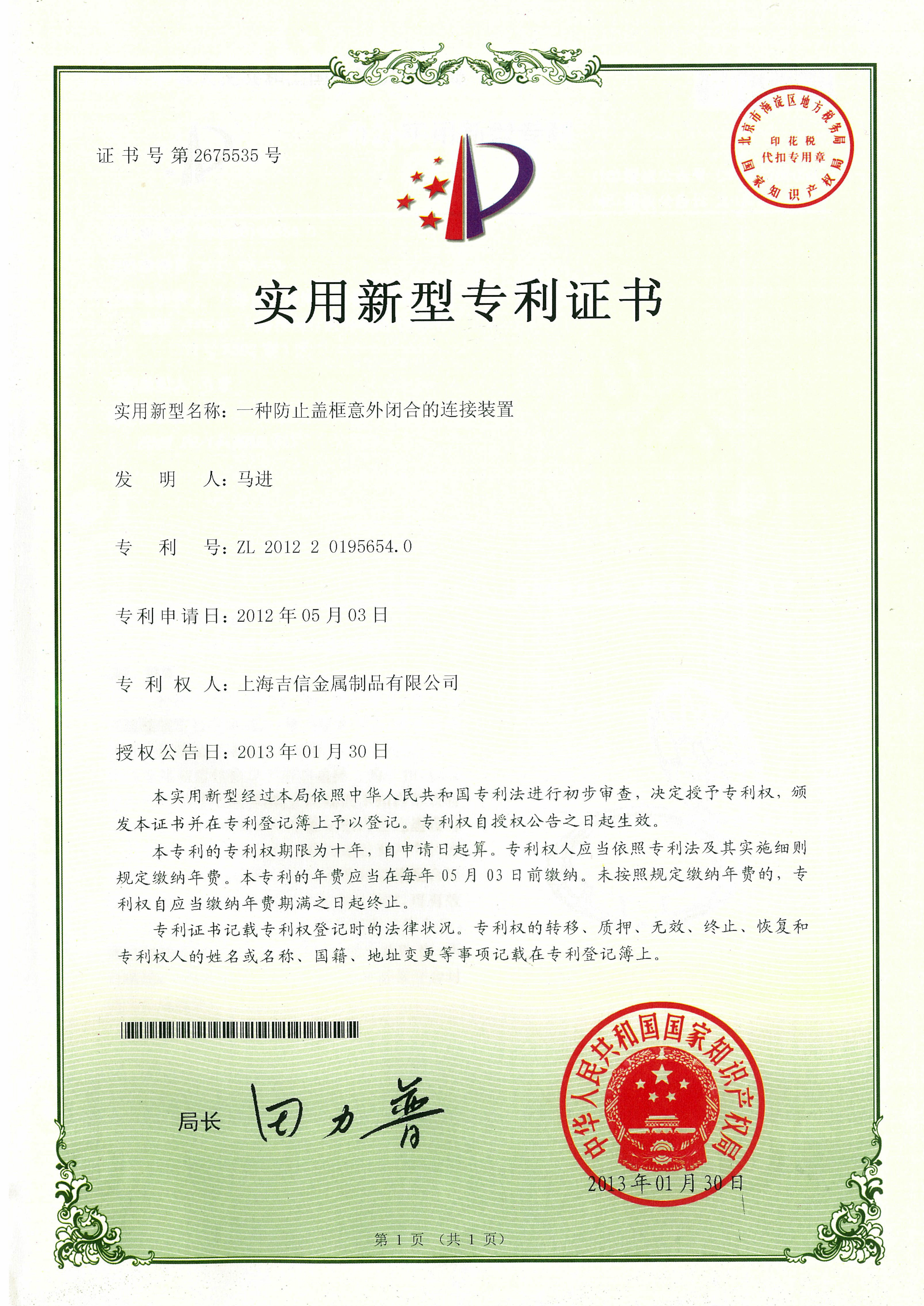 一種防止蓋框閉合的連接裝置