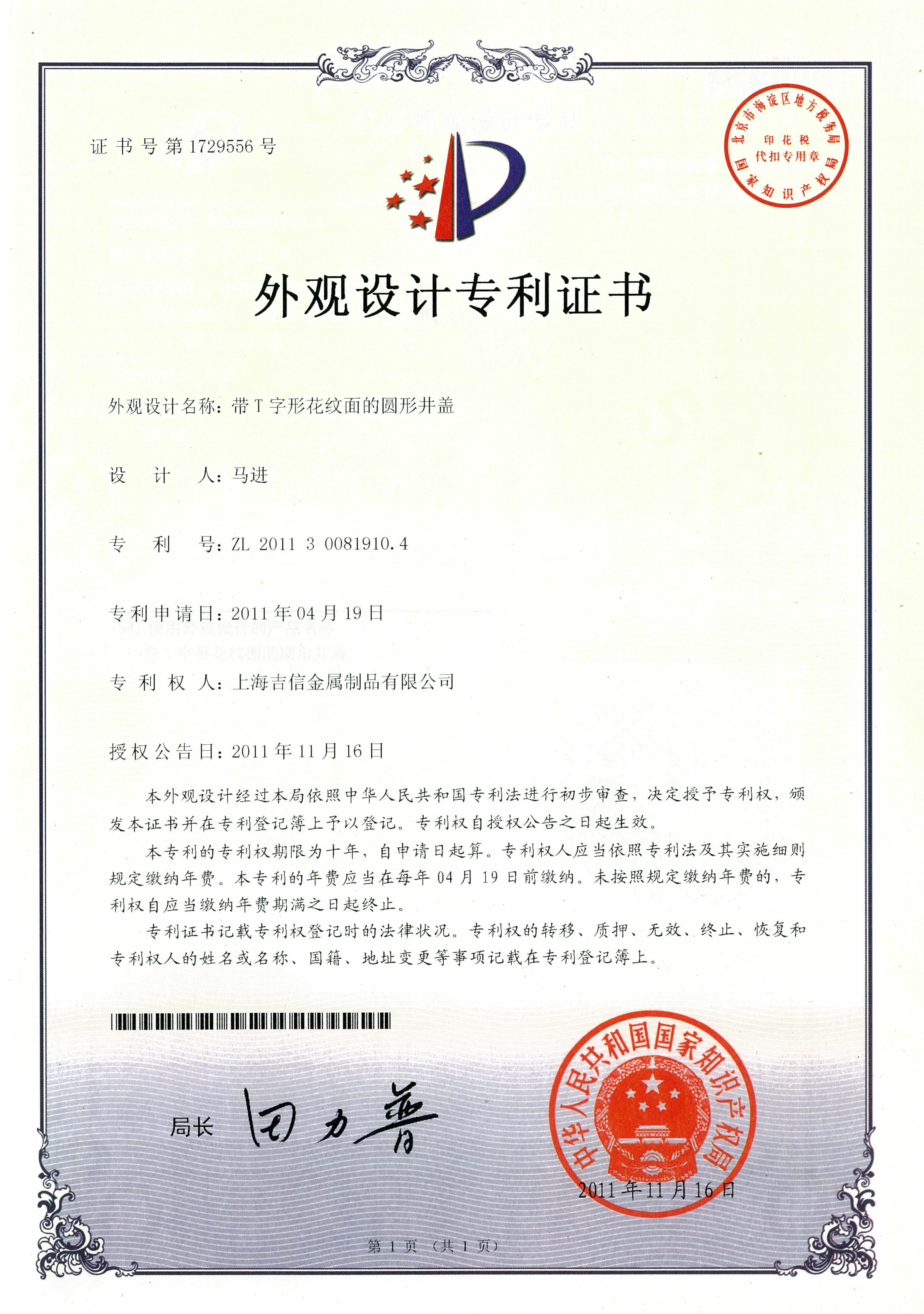 帶T字形花紋面的圓形井蓋