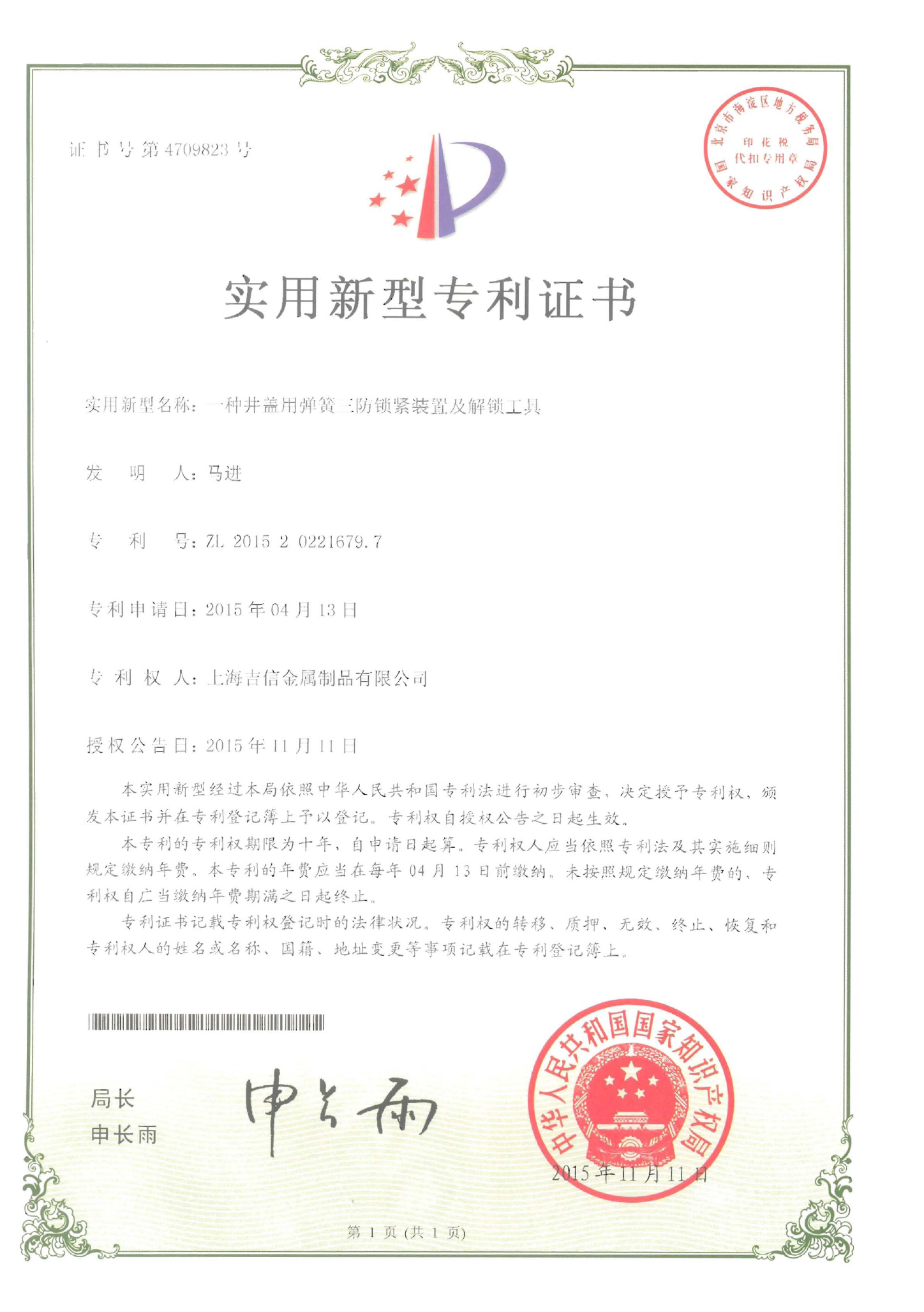 井蓋用彈簧三防鎖緊裝置及解鎖工具